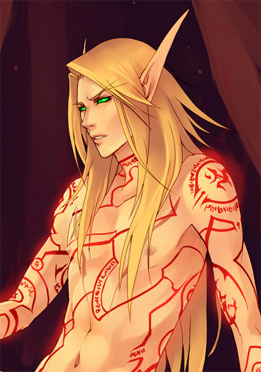 Jan. 26th, 2016 09:31 pm![]() ☄ First Impressions ♚ VISUAL: Adrasteius is slight and thin, with a pale complexion (although he tans easily) and long, cornsilk blond hair. He's about 5'3 (5'4 if you count the tips of his ears) and typically weighs no more than 110 lbs at any given time. Like all blood elves, he has long, owlish eyebrows, pointy ears (also long), and bright, acid-green eyes. His eyes glow, and though he has pupils, they are typically not discernible. His ears mimic cats' ears, in that they move independently from his head and often suggest his emotional state. They perk forward, droop down, press back flat, etc. Adrasteius has red (sometimes blue) arcane tattoos over absolutely his entire body except his face and hands. Like so. Yes, his entire body. ♚ FASHION: Adrasteius dresses in simple robes, simple pants, simple shirts, and so on. Of course, 'simple' for the average blood/high elf still translates to 'silk with lots of bright, delicate patterns'. He prefers flowy, hanging sleeves (lots of space to sew vials into the lining) and fingerless gloves. Color-wise, he prefers black + red or blue + gold. ♚ DEMEANOUR: Intense and attentive. Adra looks at people like they're the only person in the world, and focuses on them entirely. Sometimes this is not necessarily a good thing. ♚ AURAL: Adra has a deep voice; he sounds a bit like this guy. (An example with only slightly less singing.) He's energetic, booming, and uses lots of hand gestures (some less polite than others). ♚ OLFACTORY: Lavender and burning embers. Adra often dabs lavender oil on his wrists, largely in a futile attempt to keep himself calm. ♚ MENTAL INFORMATION: Although Adra is a wisp of a man, mentally he is well-fortified. Trying to read his mind results in running against something like a shield made of fire. Unless you're a high-level telepath, it's probably not going to happen. ♚ MAGICAL INFORMATION: If someone with magic sense approached Adra, they'd get an interesting cocktail: light and shadow and some arcane, but also shot through with a virulent thread of fel (demonic) taint. Adra drank that demon's blood with the rest of em, and his body bears the mark. ☄ OOC ♚ BACKTAGGING: I'll backtag for as long as necessary. In a similar vein, if a thread gets dropped, it's never you; it's me--sometimes things slip away between bouts of feeling-like-garbage, and I might get a little embarrassed about continuing. That said, I'm always happy to work things out. ♚ FOURTHWALLING: Saying, 'oh, an elf' is fine; saying, 'oh, are you level 100? what's your spec' is less so. (it's discipline / fire, though) ♚ PHYSICAL AFFECTION: Adrasteius is fine with casual affection--hugs, head pats, a firm handshake, a friendly whack to the shoulder or back, etc. Going beyond that into more intense intimacy (kissing etc) gets him flustered pretty fast, though, ♚ PHYSICAL VIOLENCE: A strong wind knocks this guy over. ♚ RELATIONSHIPS: He is an excellent wife. |